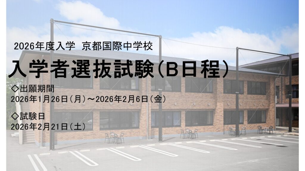 (受付中)【中学校入試】2026年度 中学入試(B日程)出願受付開始